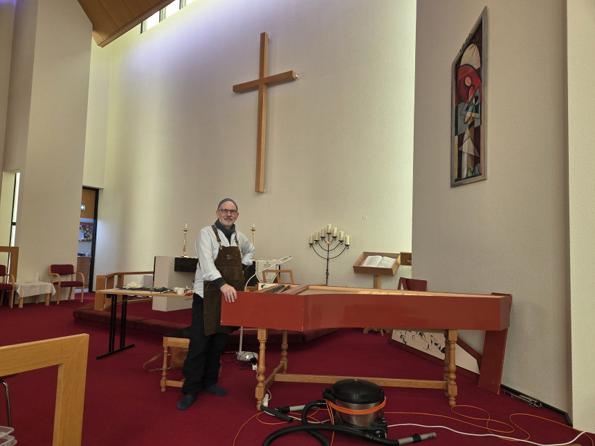 Tónlistarskólinn fékk kćrkomna heimsókn í mars, en Örn Magnússon kom og varđi nokkrum dögum í ađ vinna í sembalnum okkar, sem staddur er í Egilsstađakirkju. Semballinn kom ósamsettur til skólans á sínum tíma og Kristján Gissurarson setti hann saman. Kristján var afar laghentur mađur og tónlistarmađur ađ auki, og kom hljóđfćrinu saman međ ótrúlegri lagni. Hins vegar ţurfti lćrđan hljóđfćrasmiđ til ţess ađ fullklára hljóđfćriđ svo ţađ yrđi eins og best verđur á kosiđ, en Örn hefur einmitt lagt stund á nám í sembalsmíđi. Ţađ var ţví mikiđ happ ađ fá Örn til okkar, og hljóđfćriđ er orđiđ allt annađ!