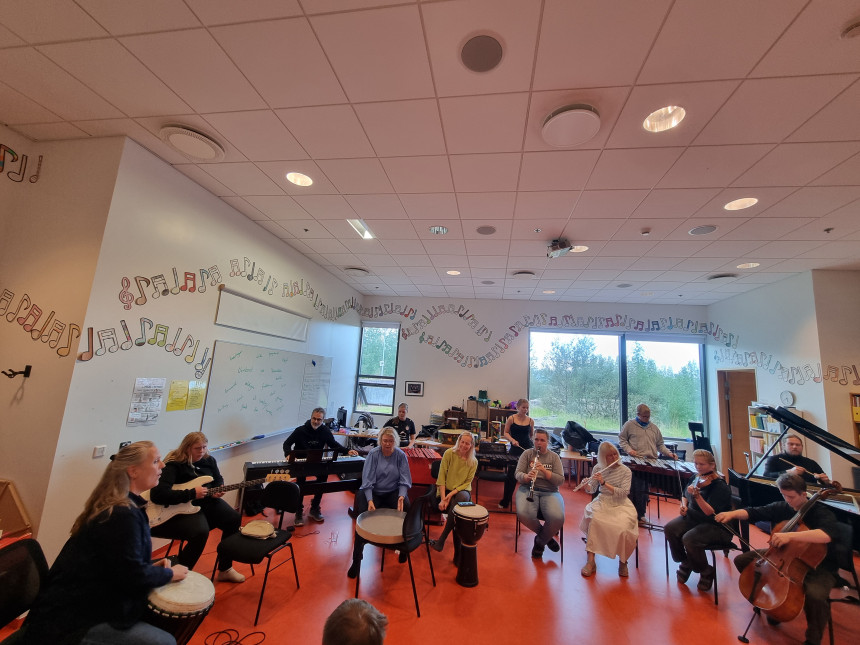 Dagana 25.-27. ágúst fór fram námskeiđ í Skapandi tónlistarstjórnun í Tónlistarskólanum. Sigrún Sćvarsdóttir Griffiths og Sćvar Helgi Jóhannsson kenndu námskeiđiđ, sem var bćđi fyrir nemendur og kennara skólans. Námskeiđiđ gekk út á ţađ ađ nemendur og kennarar sömdu og ćfđu saman alveg glćnýtt lag á ţessum ţremur dögum sem var síđan flutt í lok námskeiđs á litlum tónleikum. Kennarar fengu svo ađ auki innsýn í ţađ hvernig svona vinna er hugsuđ og ýmislegt af ţví sem var í gangi á međan á ţví stóđ í umrćđutíma eftir ćfingar. Mikil ánćgja var međ námskeiđiđ og bćđi nemendur og kennarar lćrđu mikiđ!